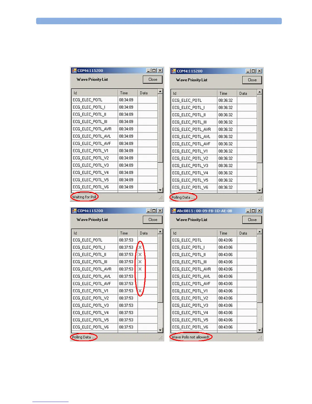 The "X" mark in the column "Data" indicates the wave data transmission for the respective wave