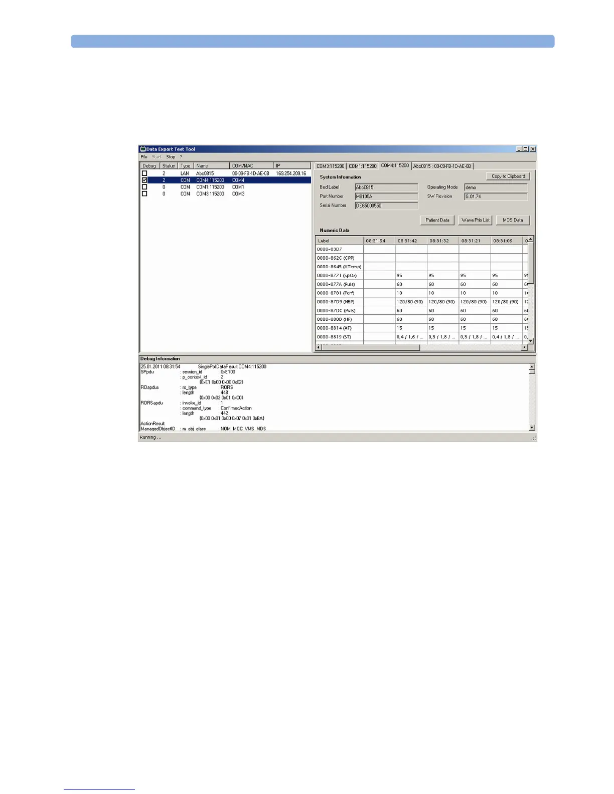 The screen shot below shows the DETT with several connected patient monitors. In this example one