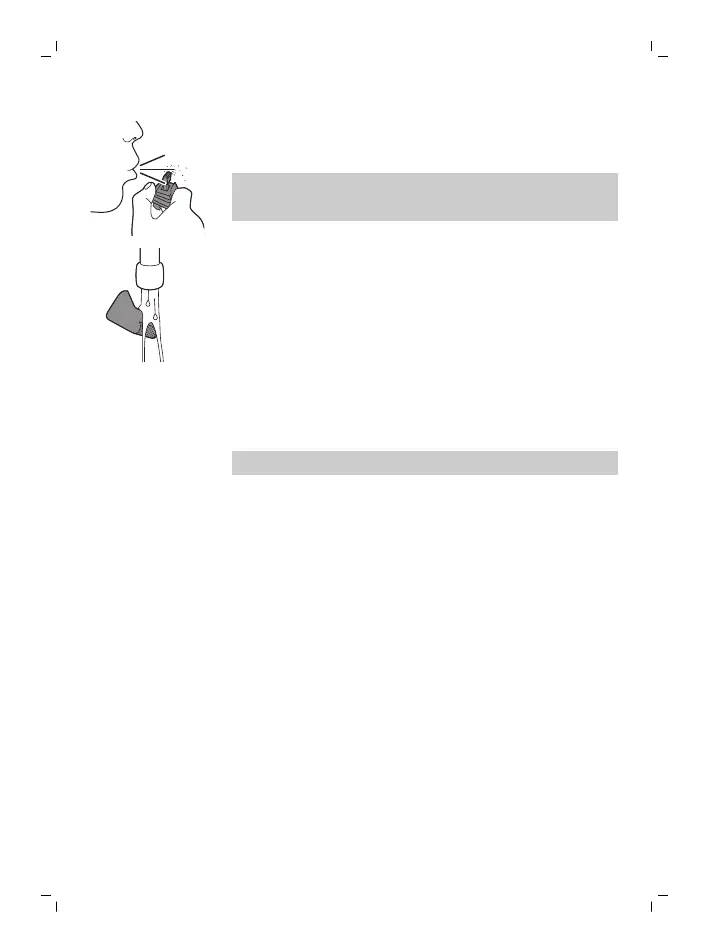 2 เป่าและ/หรือเขย่าให้เส้นขนที่ติดอยู่ภายในเครื่องโกนเฉพาะจุด-