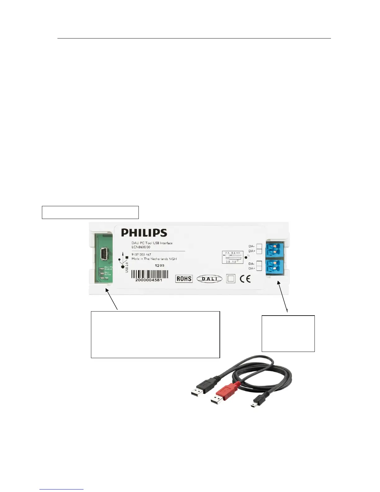 interface between the PC and the DALI devices. It has a mini- USB input connector