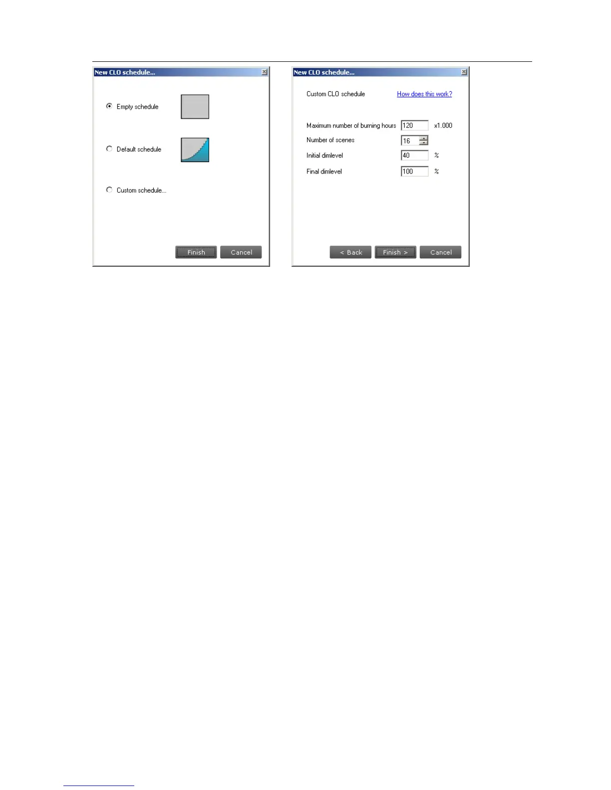 Initial dimlevel: the power level that is the starting point at 0 burning hours