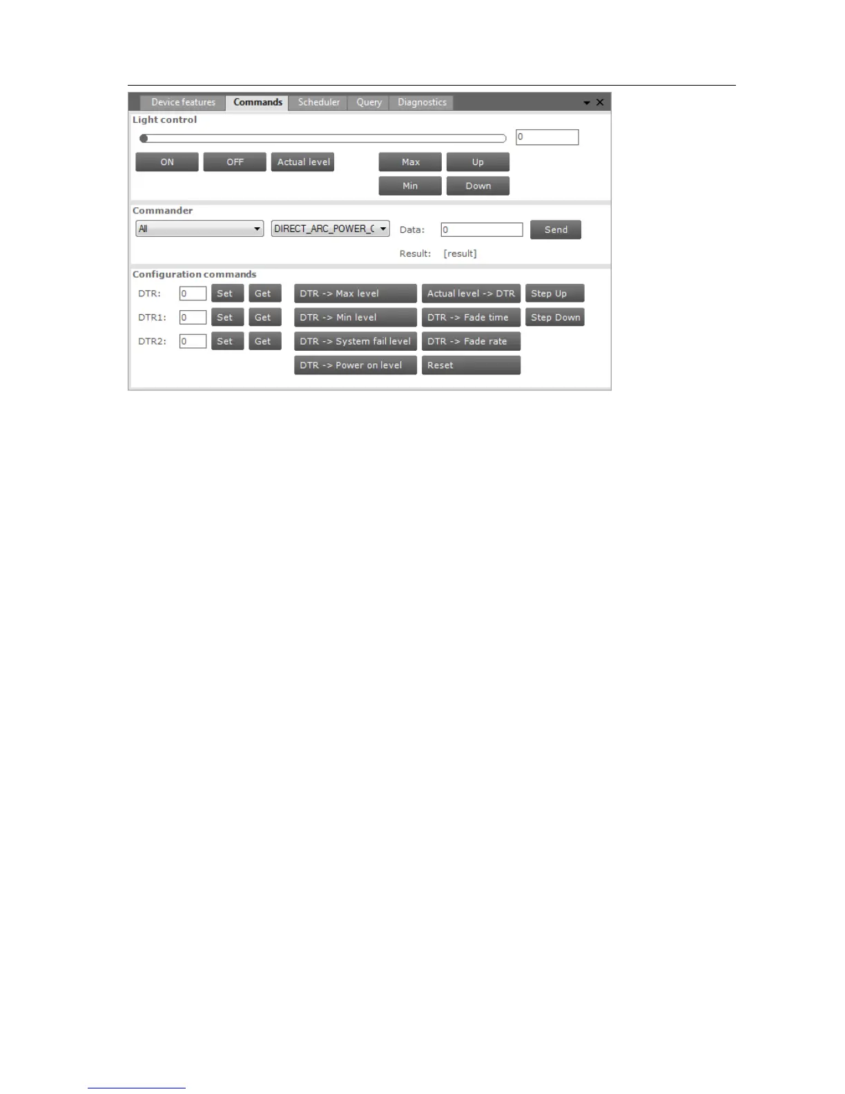 buttons in the right part of this pane. Besides a number of DALI commands using the