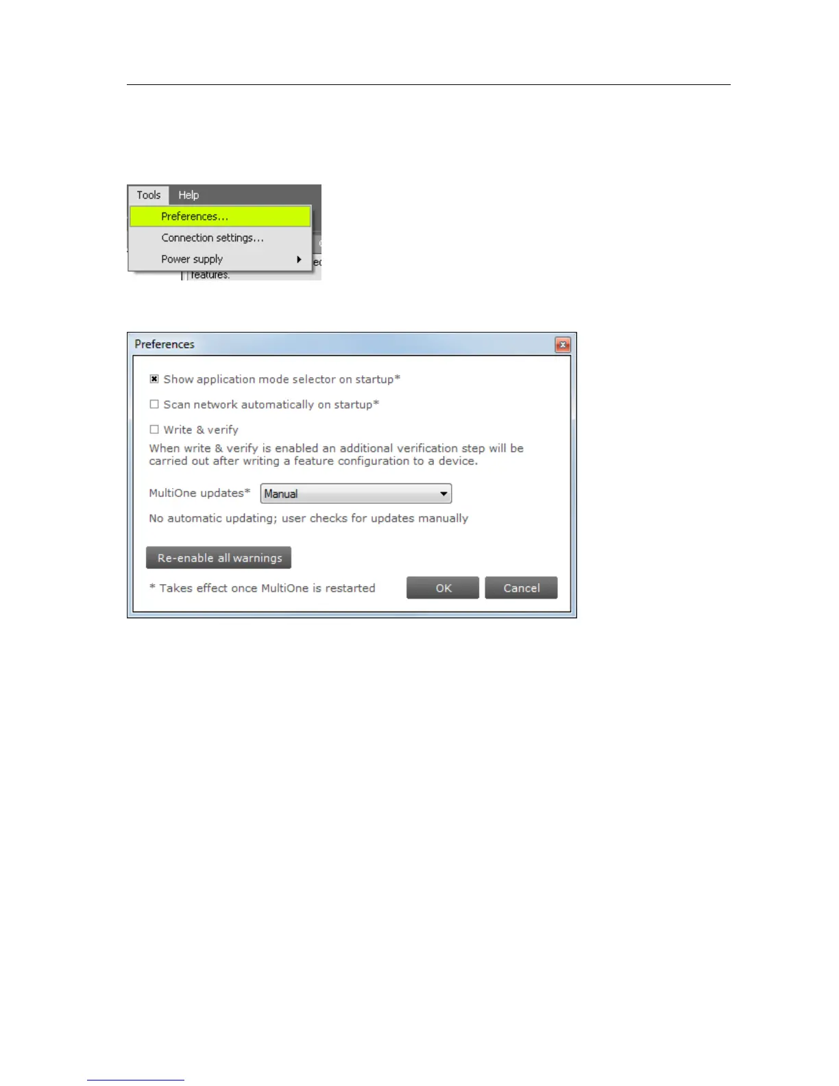 The Preferences window that pops up allows you to set MultiOne preferences.