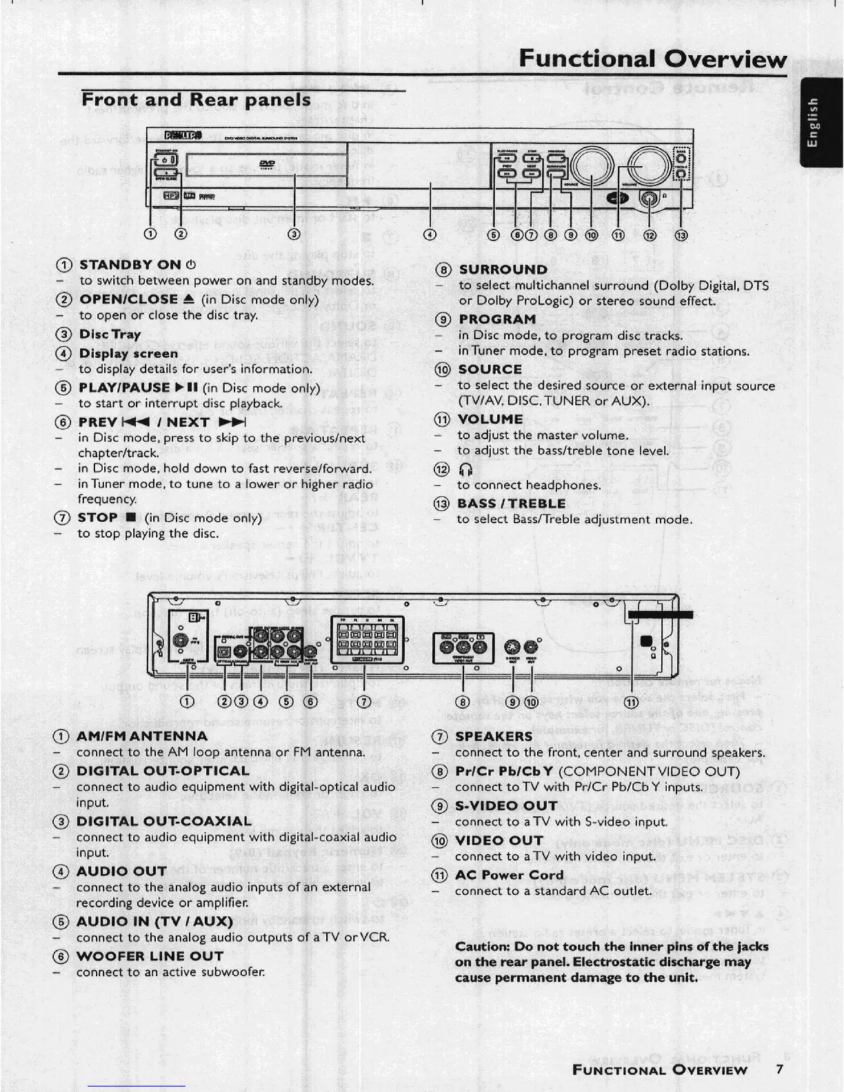 Philips MX-3600D - Functional Overview; Front and Rear panels; Connections
