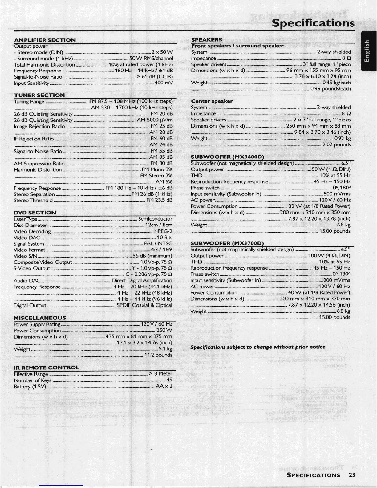 Philips MX-3700D - Specifications; Technical Specifications