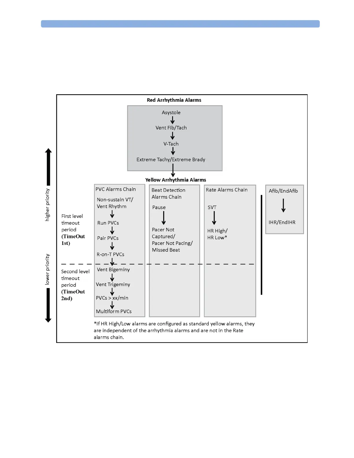 lower on the same chain. However, a high HR alarm will become active because it is on a