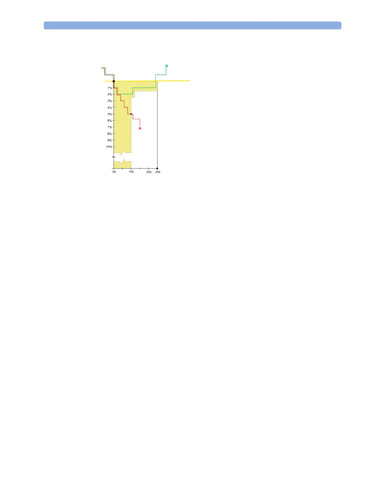 value (B) - the values stay within the shaded area for 24 seconds, deviating