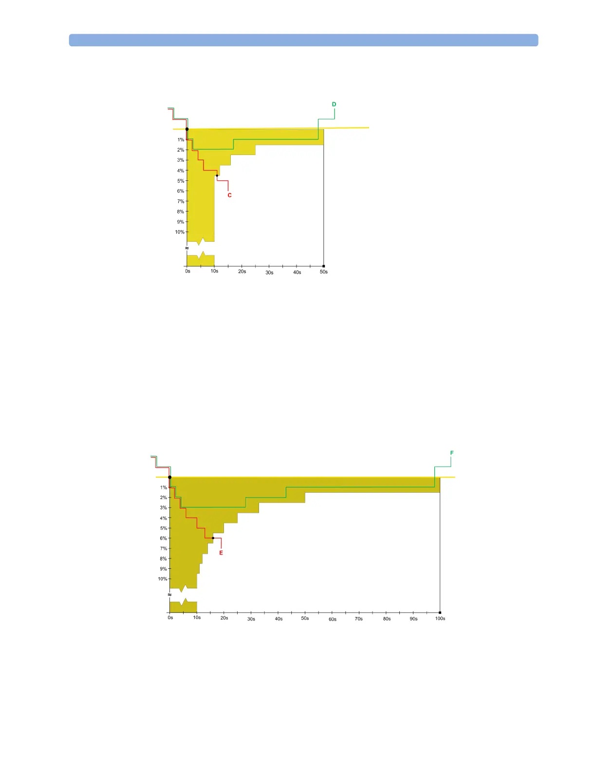 value (D) - the values stay within the shaded area for 48 seconds, deviating