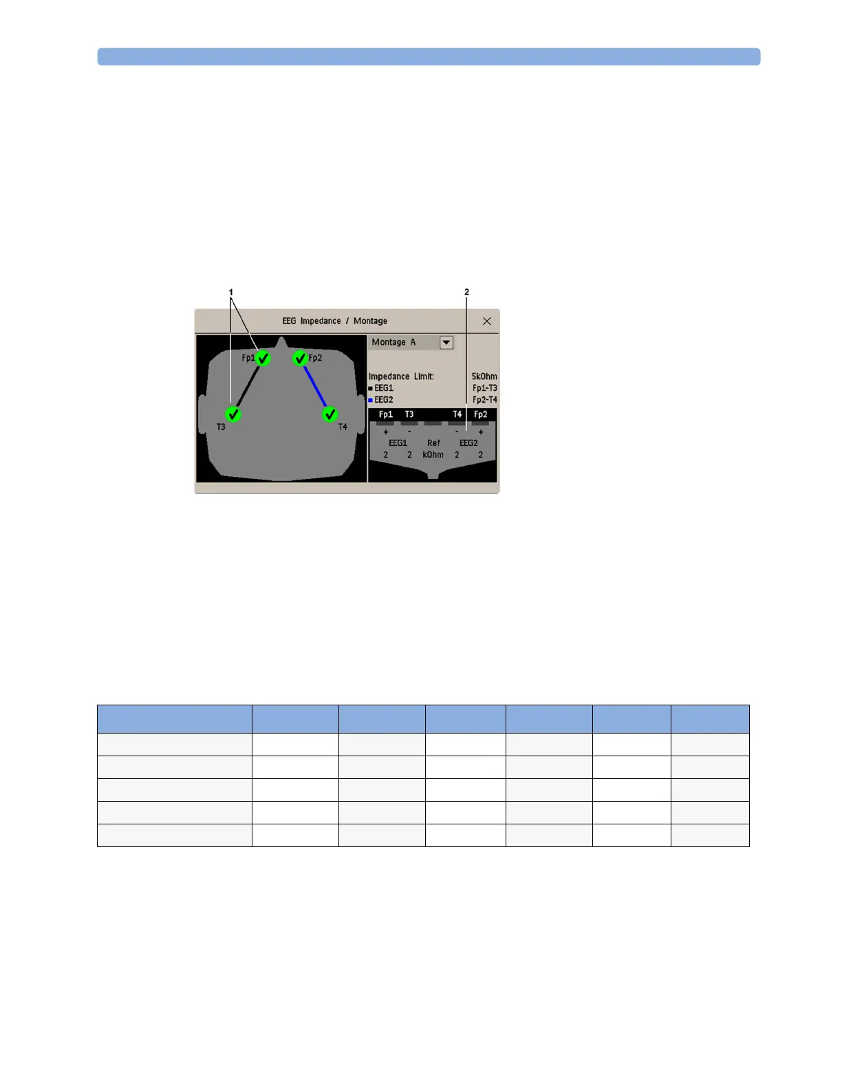 2 Attach the electrodes as illustrated in the EEG Impedance / Montage window.