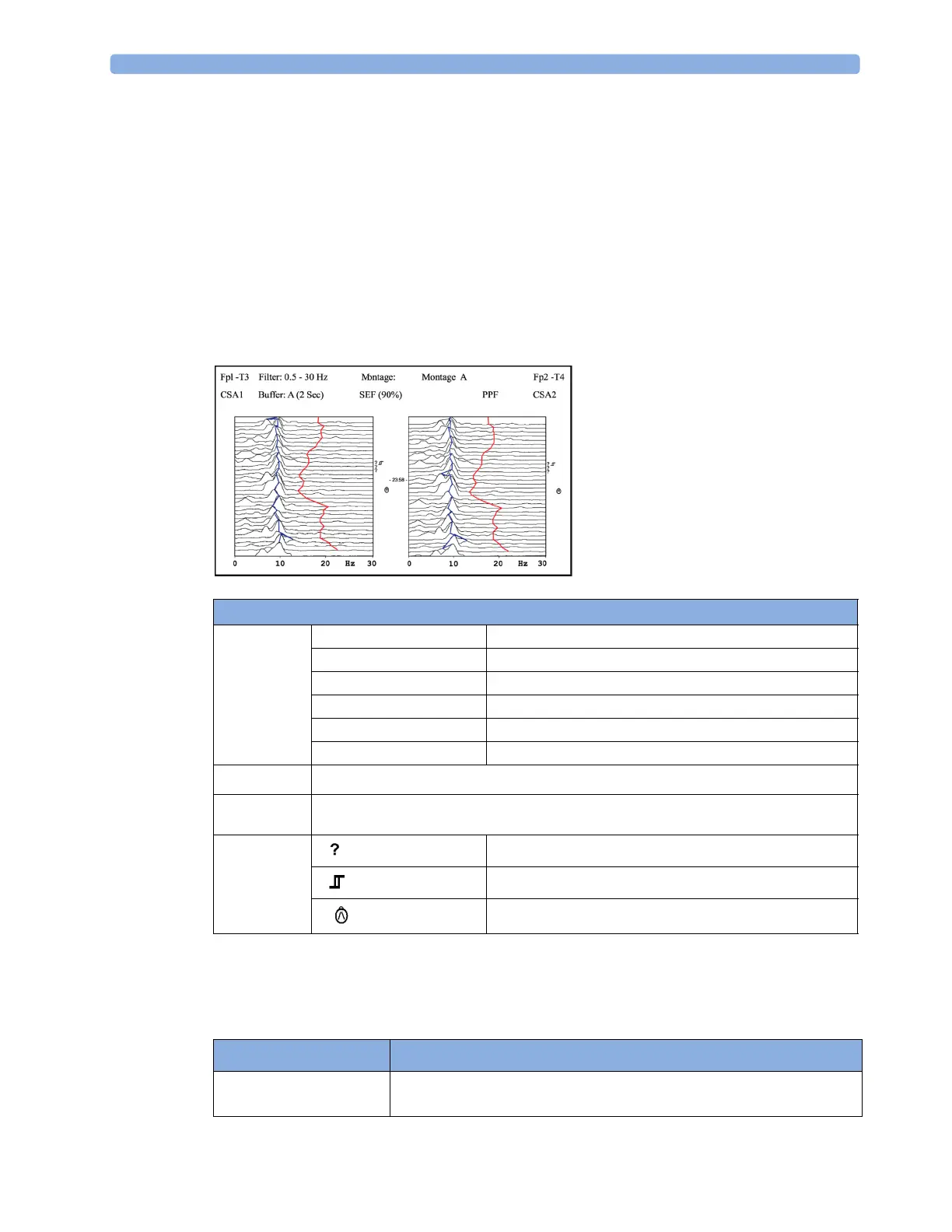 The CSA window provides an overview of the patient's EEG values over time. It may be configured to