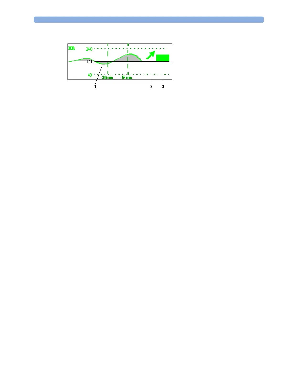 • a graphical trend, displaying patient data for the set TrendTime (1).
