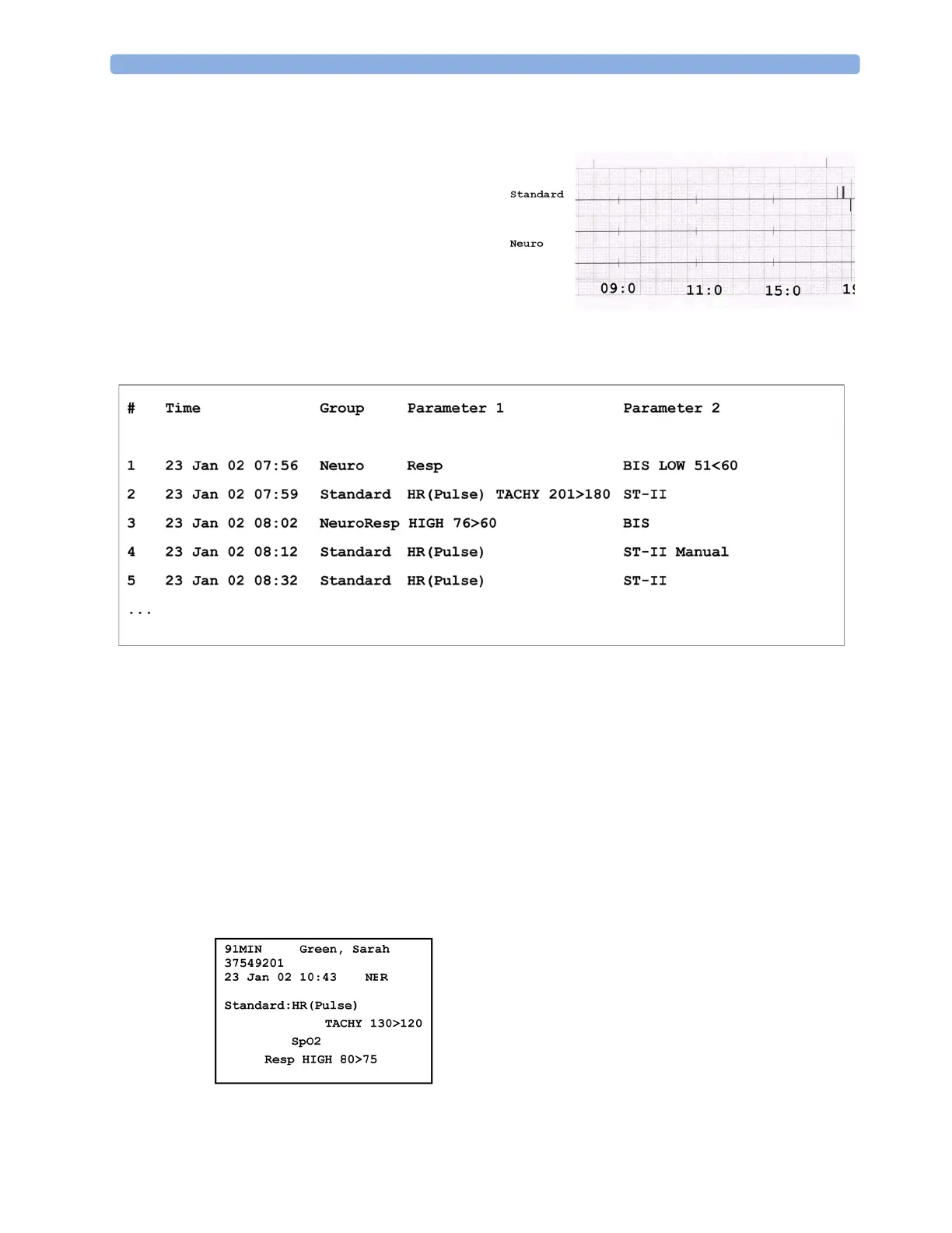 The measurements in the event group are shown in the next columns, marked "Parameter 1, Parameter