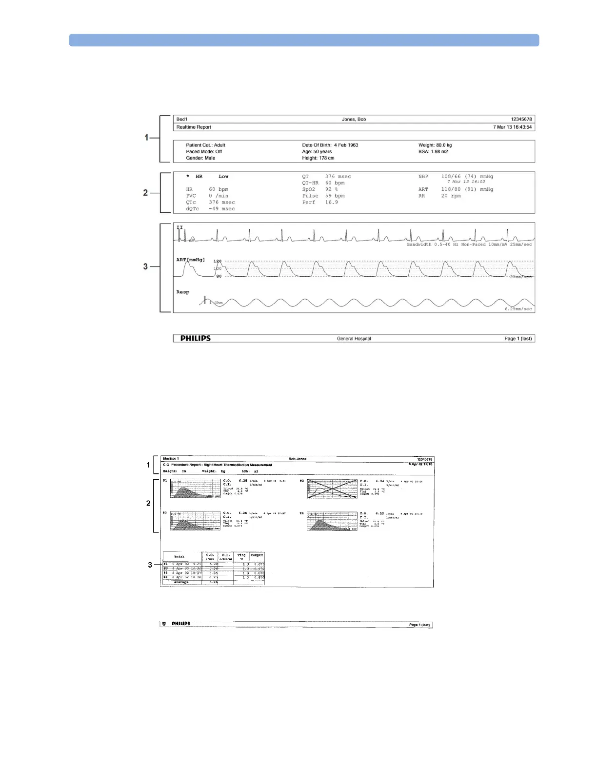 Philips MX400 - Realtime Report; Cardiac Output Report