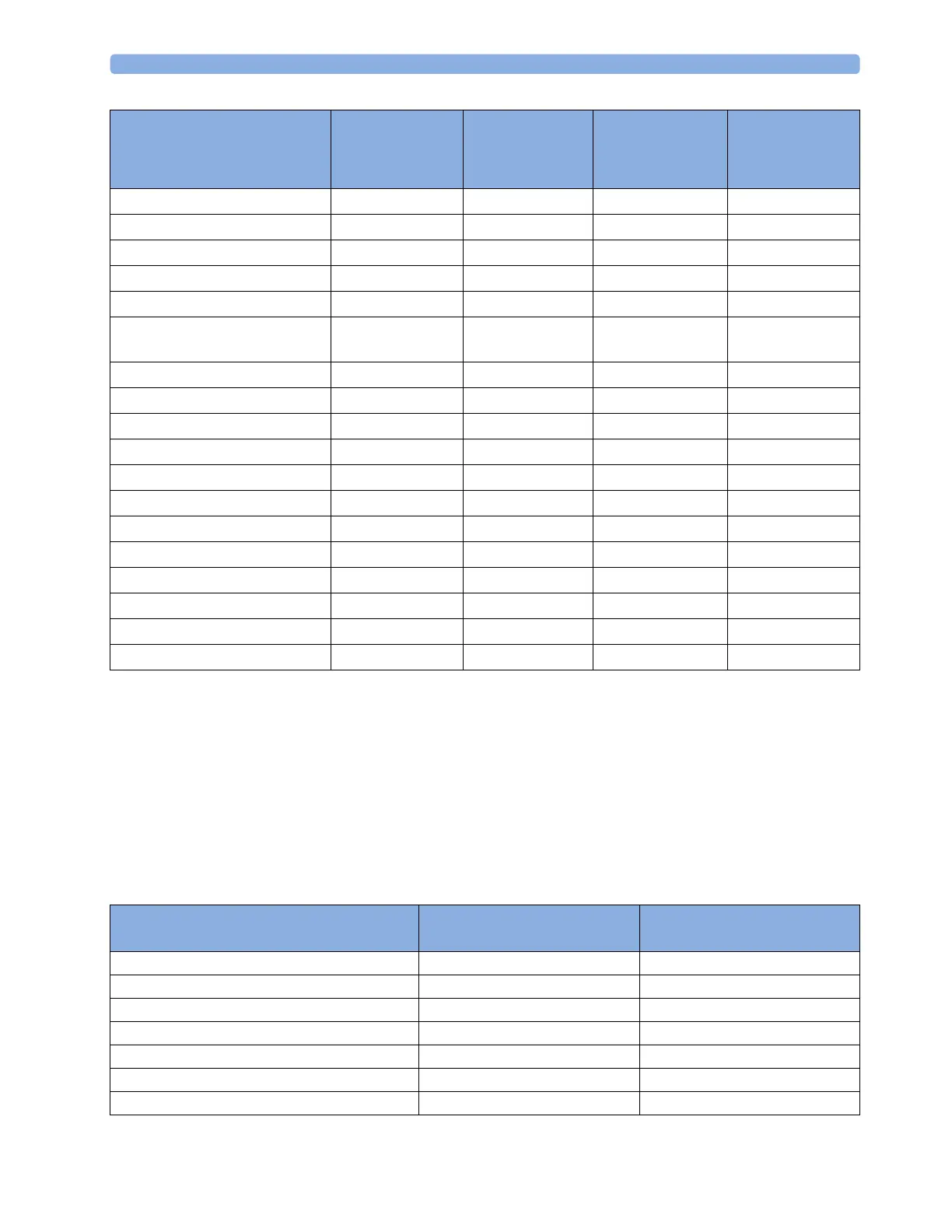 In the following tables, settings may be entered only once per table row if they are the same for all