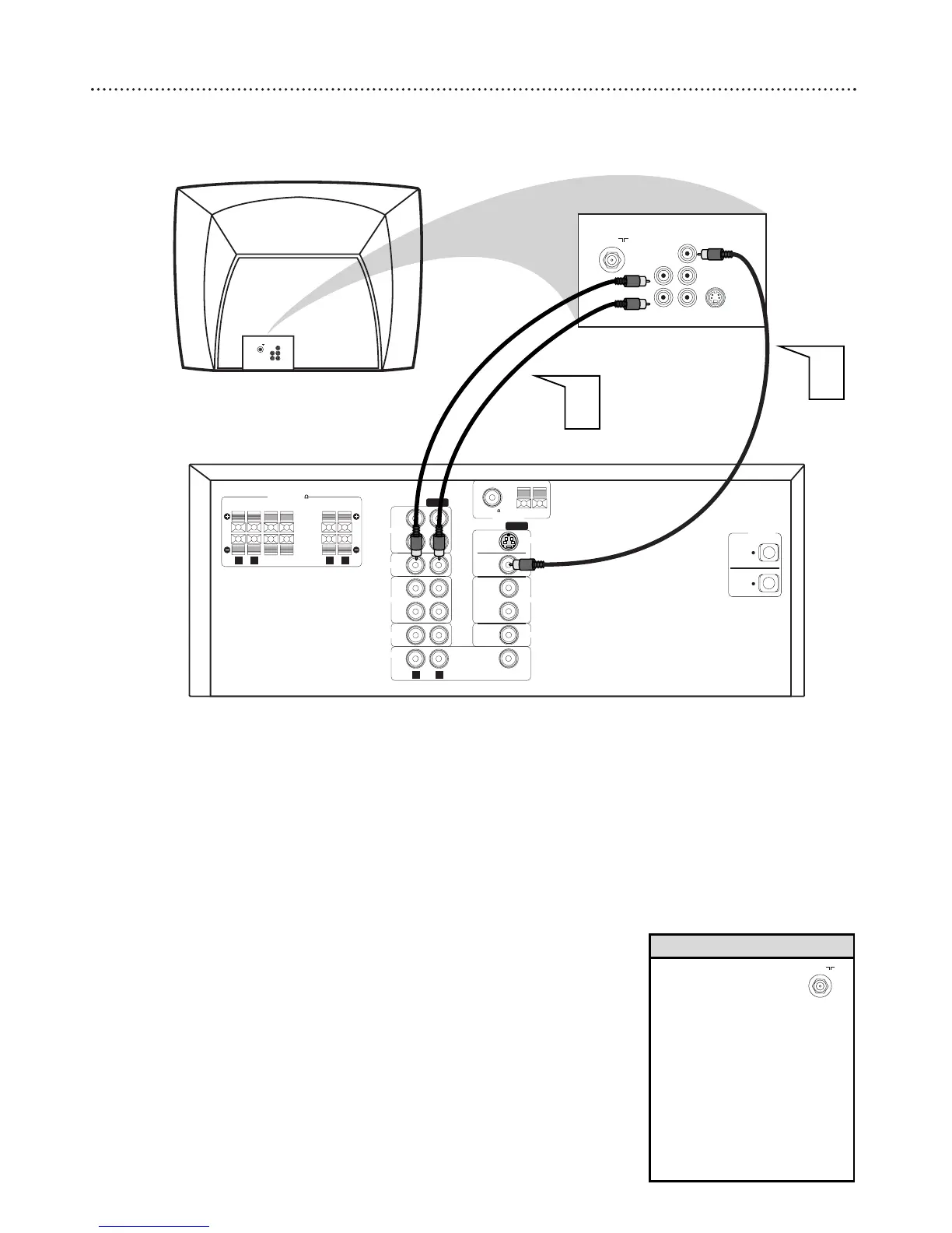 and to the TV’S right/left AUDIO OUT jacks. Match the cable