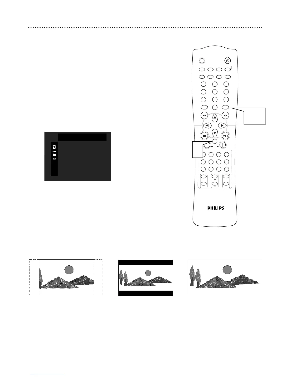 Press OK to choose 4:3/PS, 4:3/LB, or 16:9 WIDE.