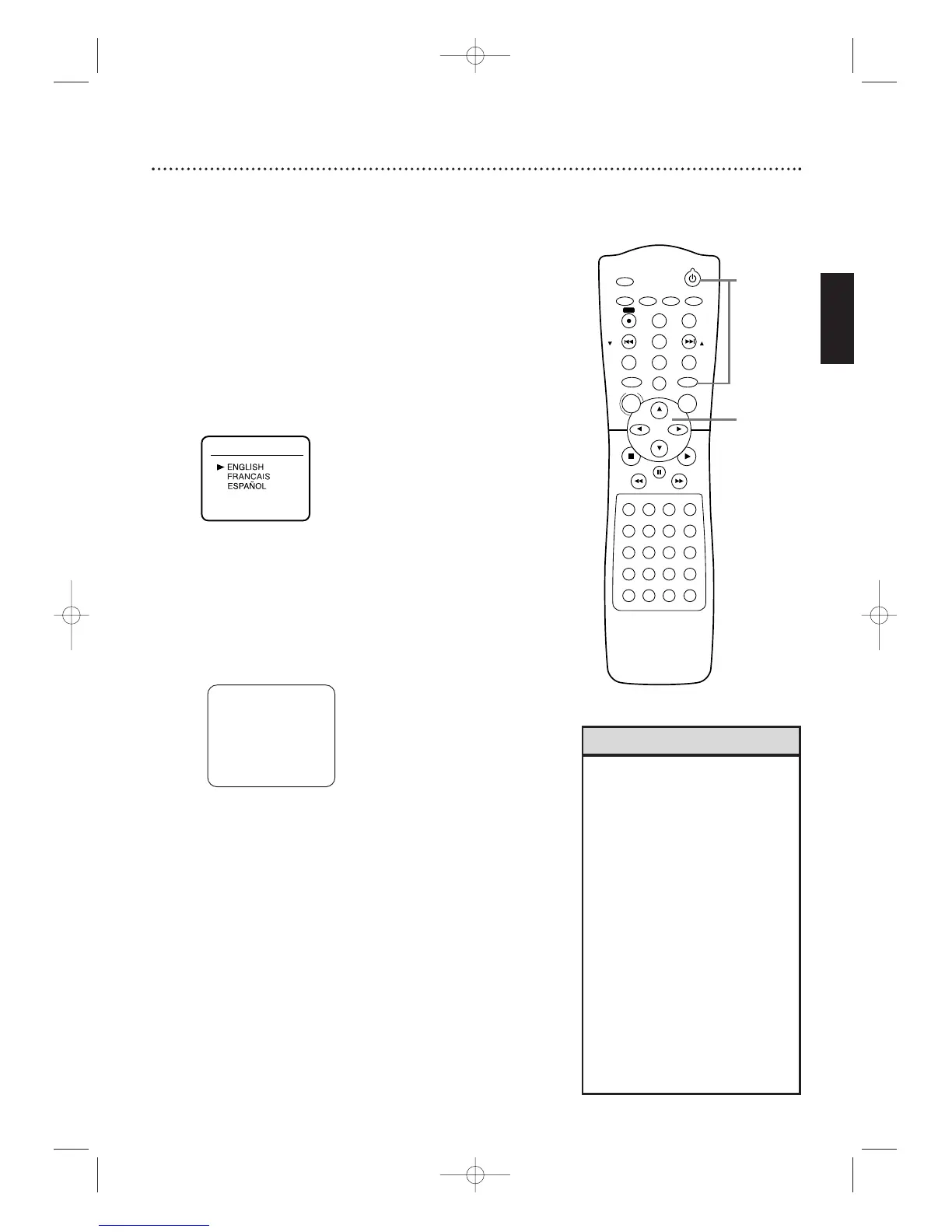 Appuyez sur o ou p pour sélectionner English, Français