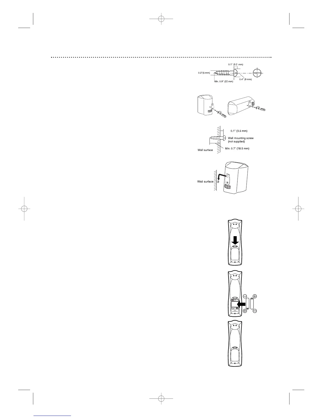 wall.Each speaker needs one screw (not supplied) for mounting.