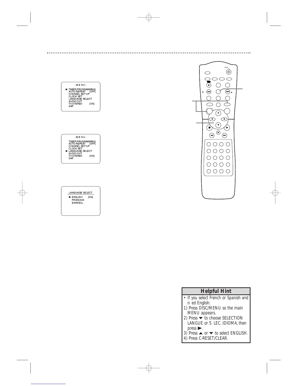 Press C-RESET/CLEAR to remove the menu.