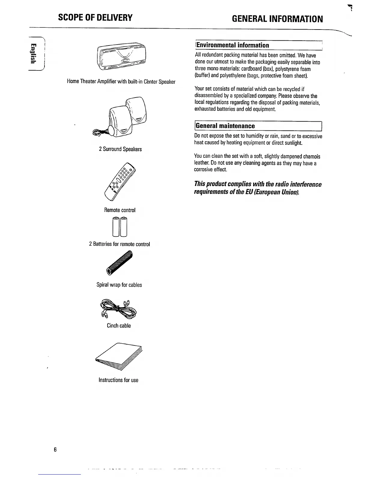 Philips MX900/22 - Scope of Delivery; General Information; Environmental Information; General Maintenance