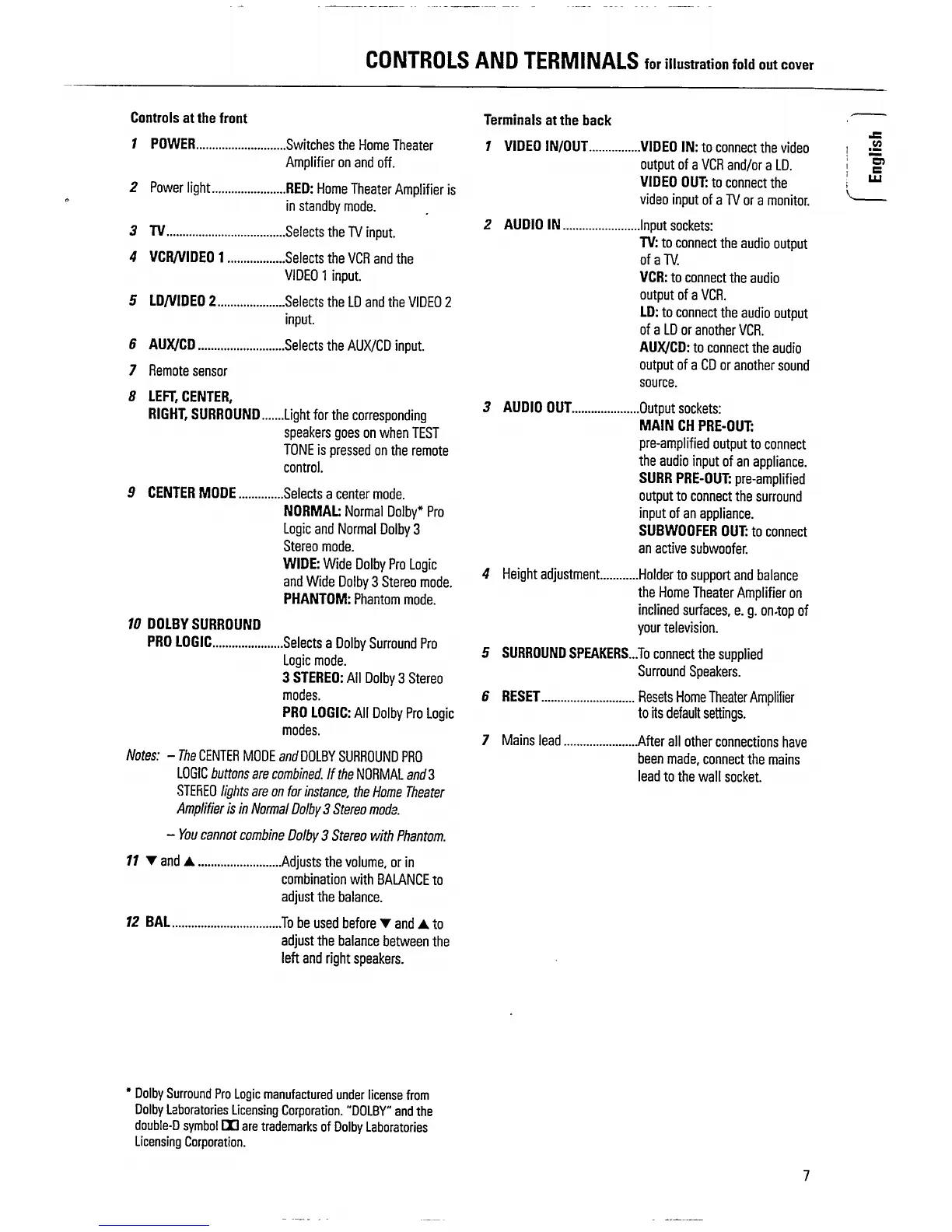 Philips MX900/22 - Controls and Terminals Overview; Front Panel Controls; Rear Panel Terminals