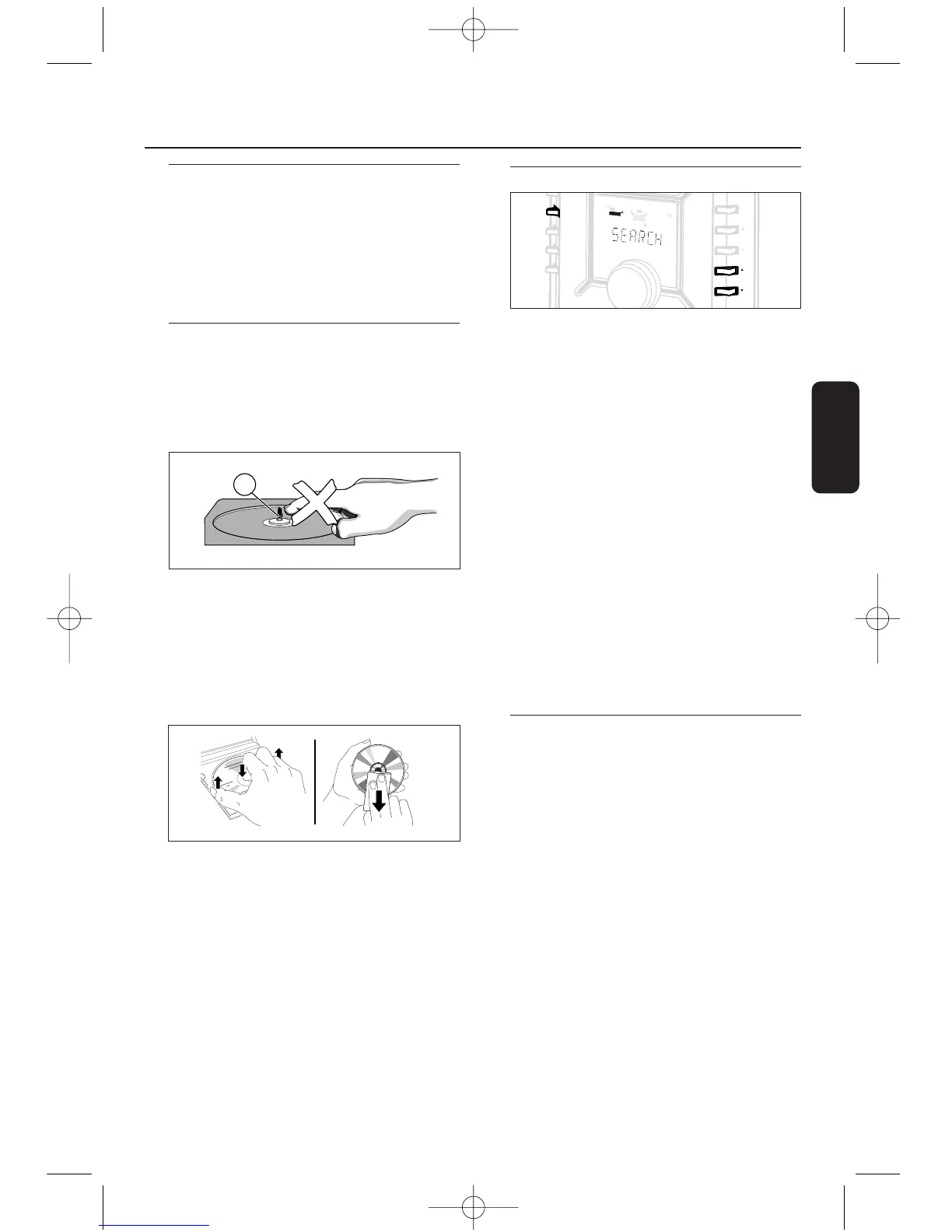 • Para sacar un CD de su caja, oprima el centro al