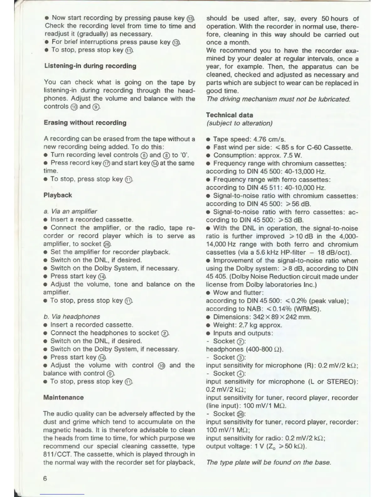 Philips N 2511 - Maintenance and Specifications