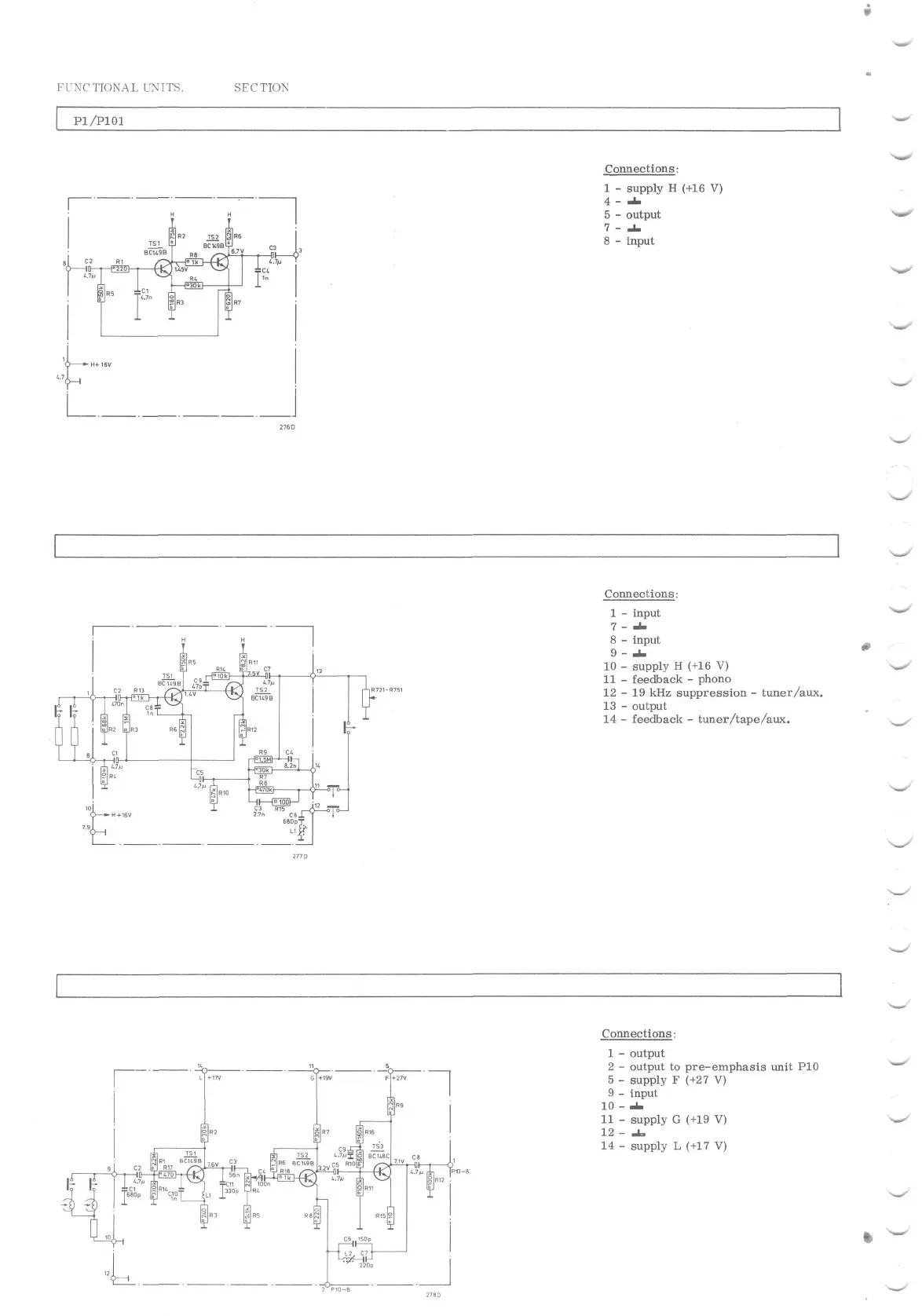 Philips N 4450 - Audio Section Functional Units; Micro Input Unit (P1;P101); Universal Input Unit (P2;P102); Playback Unit (P3;P103)