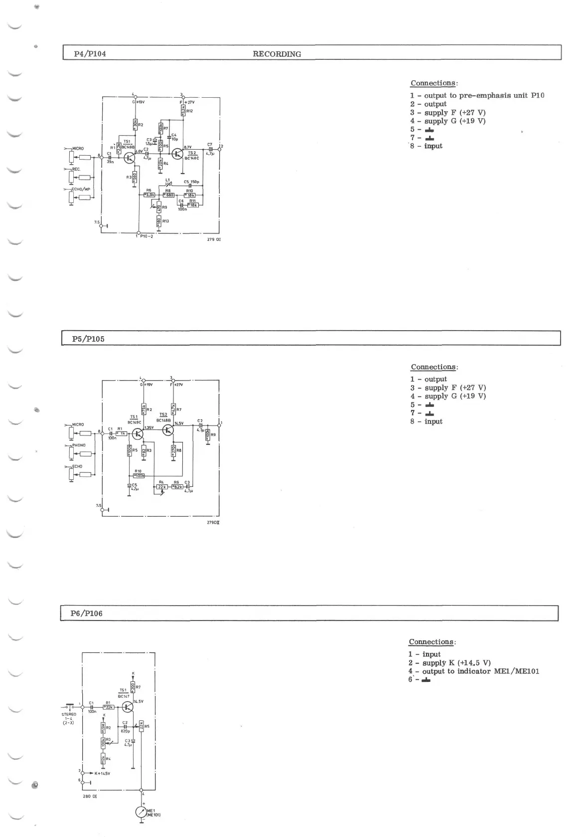 Philips N 4450 - Further Functional Units; Recording Unit (P4;P104); Before Tape Unit (P5;P105); Indicator Unit (P6;P106)