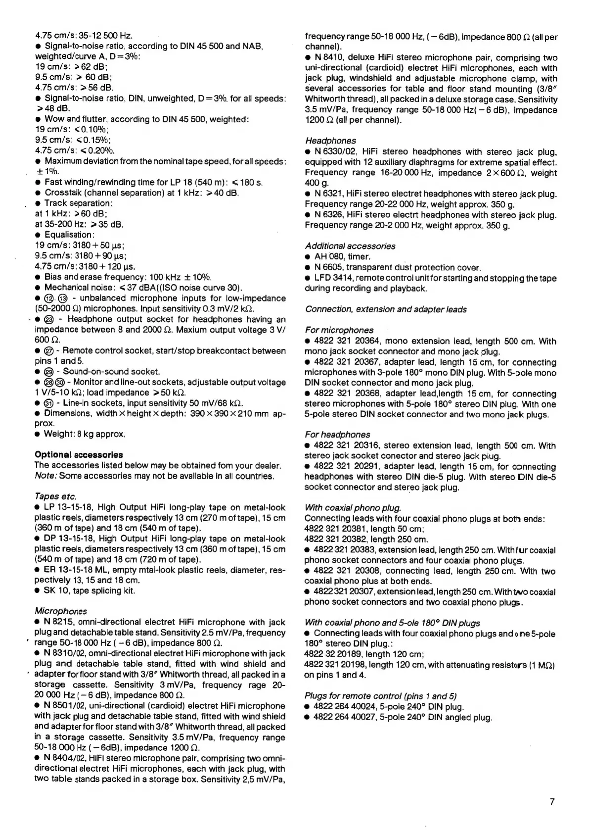 Philips N 7150 - Optional Accessories; Tapes and Splicing Kits; Microphone Accessories; Headphone Accessories