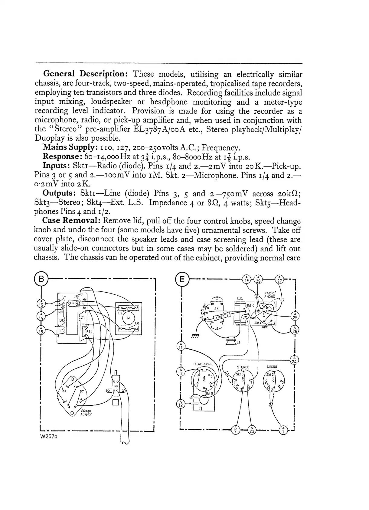 Philips N4307 - General Description of Models; Mains Supply; Inputs; Outputs