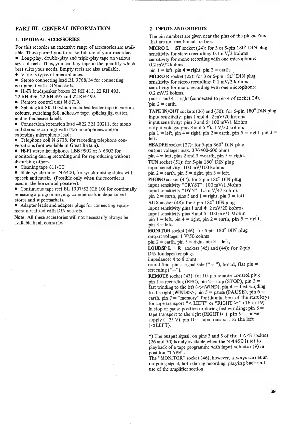 Philips N4450 - PART III General Information; Optional Accessories; Inputs and Outputs