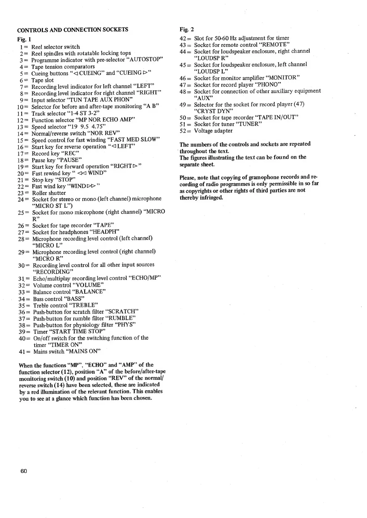 Philips N4450 - Controls and Connection Sockets; Fig. 1 Controls Overview; Fig. 2 Connection Sockets Overview