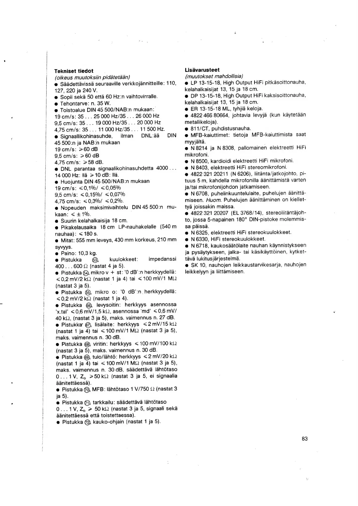 Philips N4506 - Technical Specifications (Finnish); Tekniset tiedot; Lisävarusteet