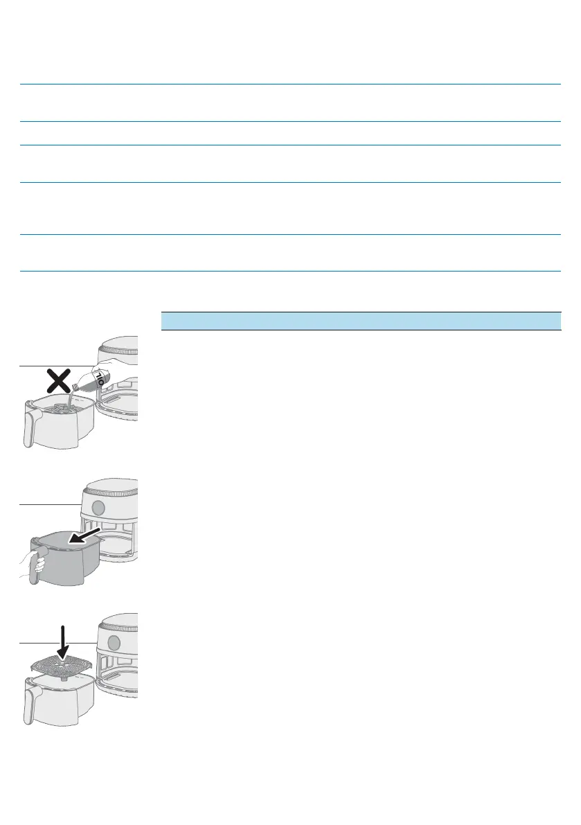 這款健康氣炸鍋運用熱氣烹調。請勿在炸鍋中盛裝油脂或任何其他液體。