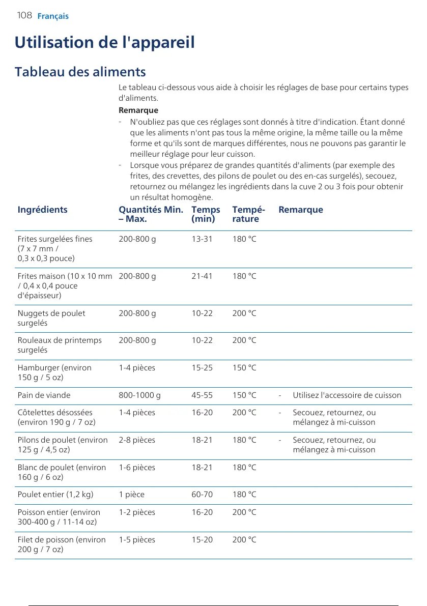 frites, des crevettes, des pilons de poulet ou des en-cas surgelés), secouez,