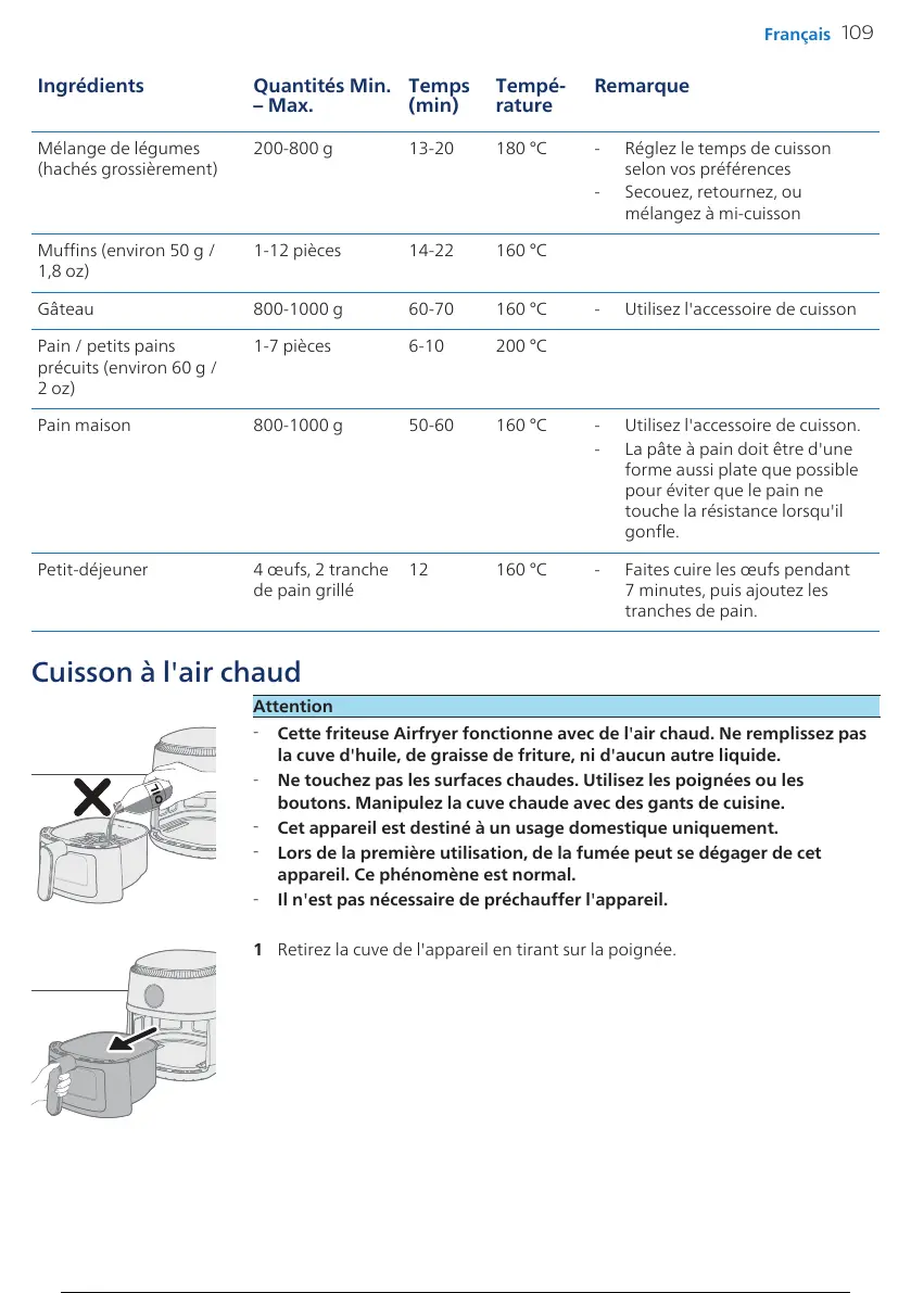 Cette friteuse Airfryer fonctionne avec de l'air chaud. Ne remplissez pas