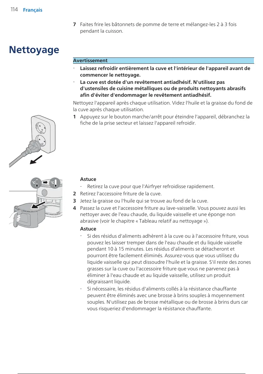 Nettoyez l'appareil après chaque utilisation. Videz l'huile et la graisse du fond de