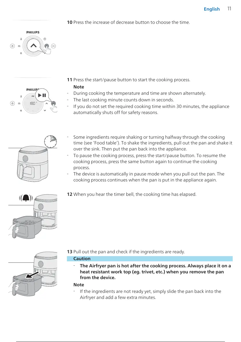 The Airfryer pan is hot after the cooking process. Always place it on a