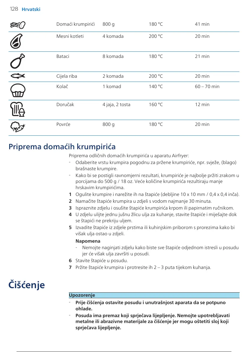 porcijama do 500 g / 18 oz. Veće količine krumpirića rezultiraju manje