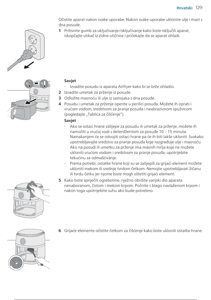 6 Grijaće elemente očistite četkom za čišćenje kako biste uklonili ostatke hrane.