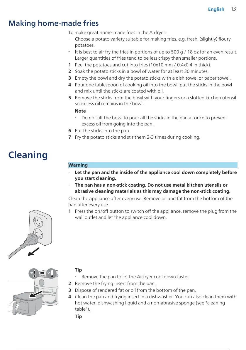 4 Clean the pan and frying insert in a dishwasher. You can also clean them with