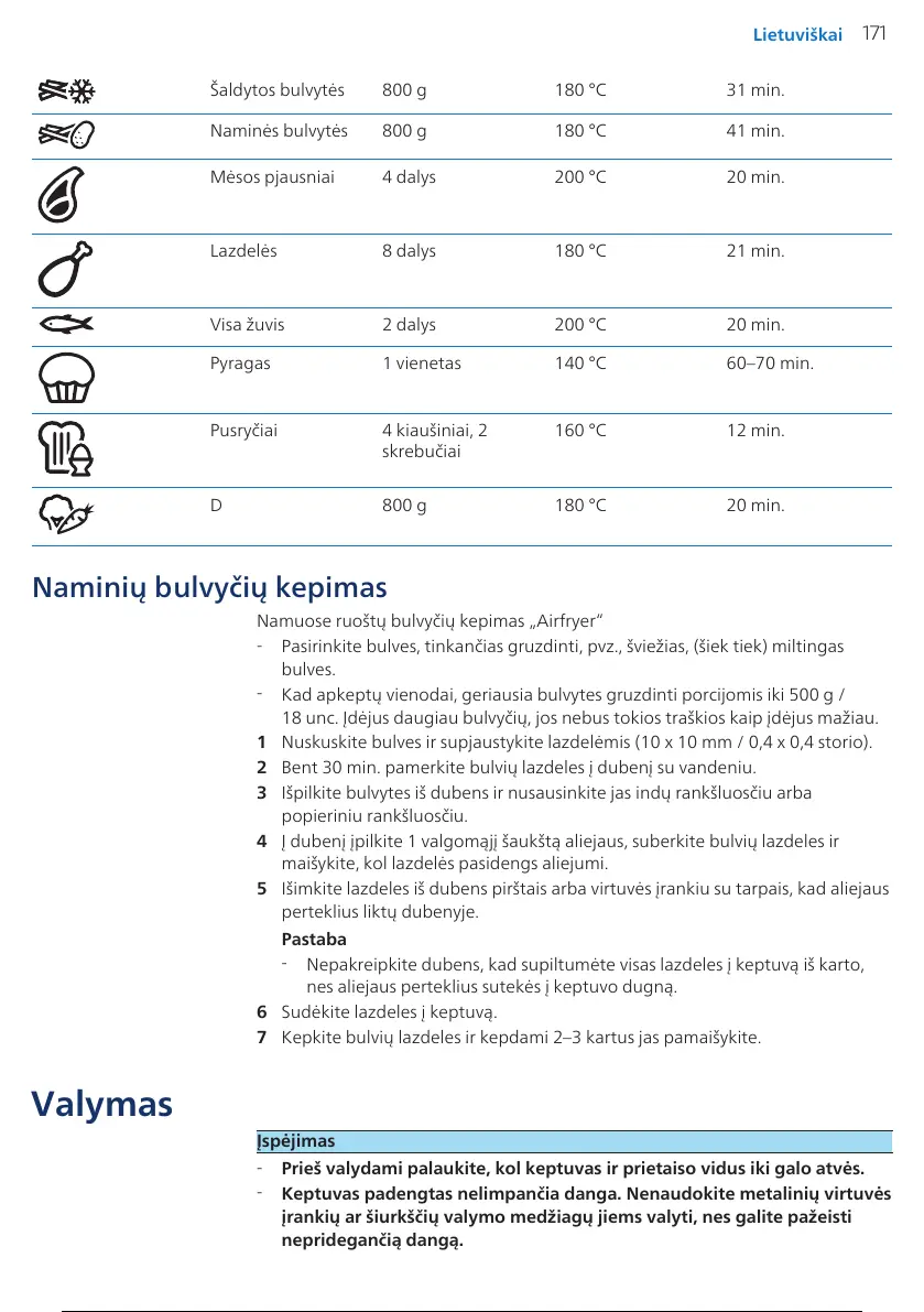 Prieš valydami palaukite, kol keptuvas ir prietaiso vidus iki galo atvės.