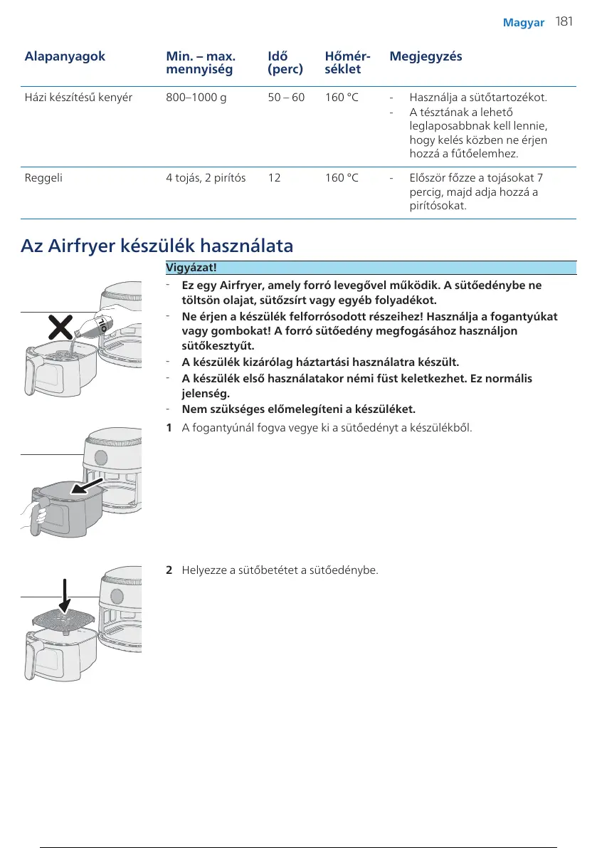 Philips NA230 - Az Airfryer Készülék Használata