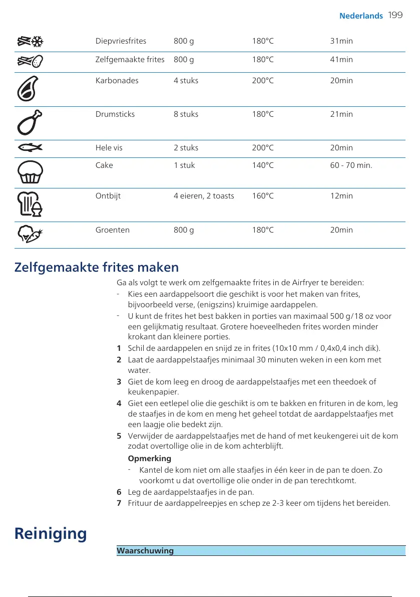 Zelfgemaakte frites 800 g 180°C 41min