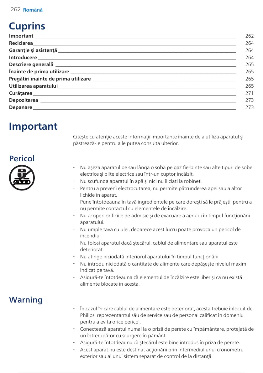 Înainte de prima utilizare __________________________________________________________________ 265