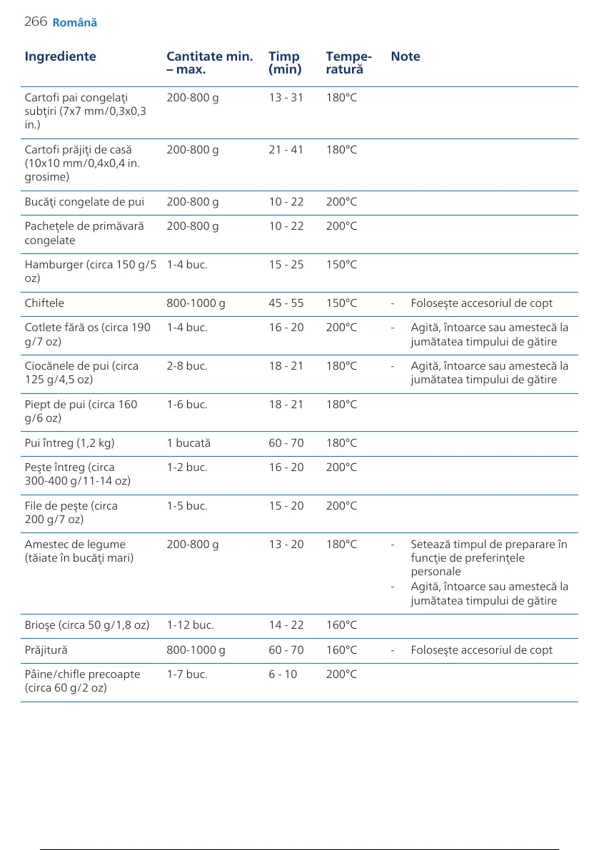 2-8 buc. 18 - 21 180°C - Agită, întoarce sau amestecă la