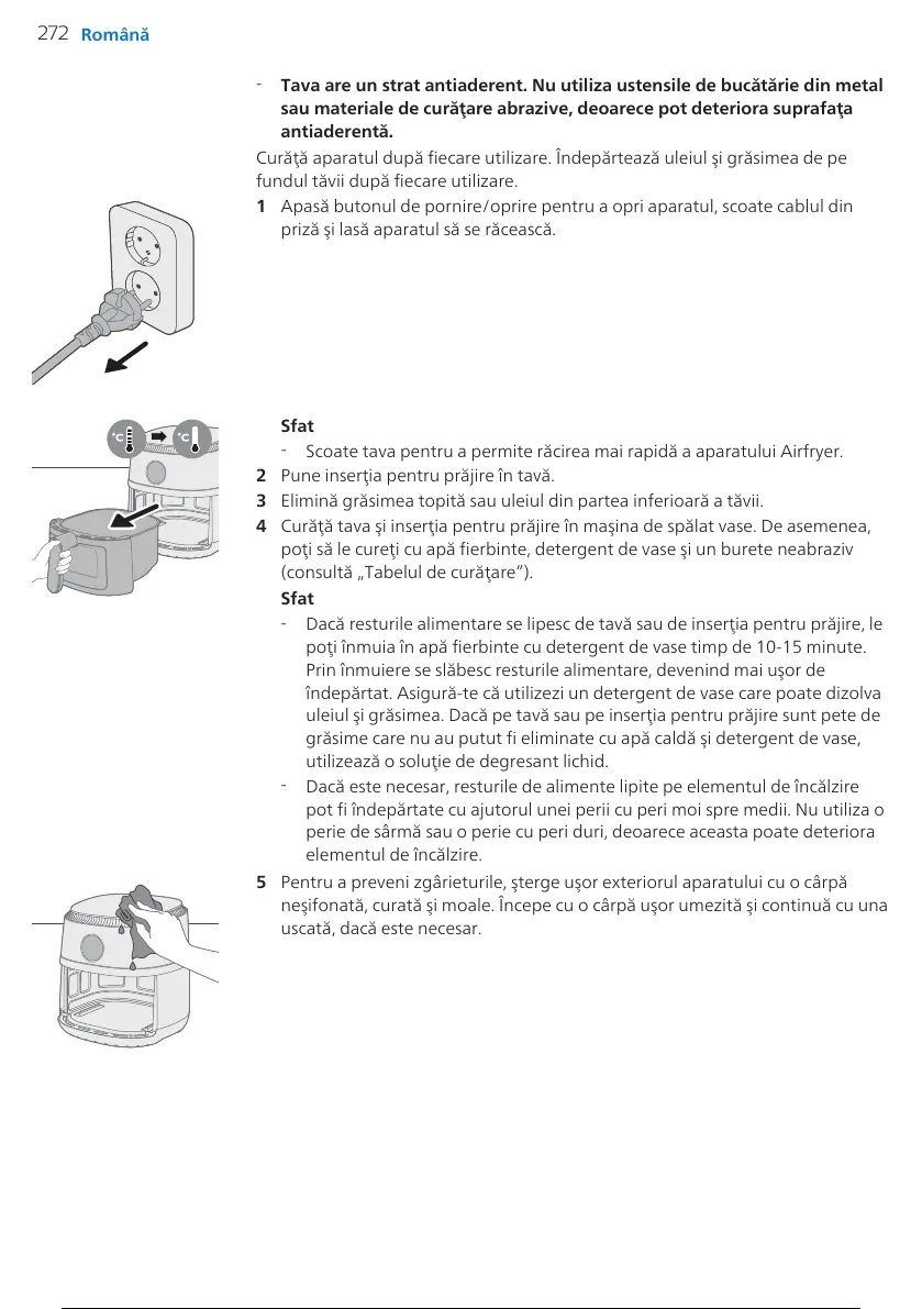 Dacă resturile alimentare se lipesc de tavă sau de inserţia pentru prăjire, le