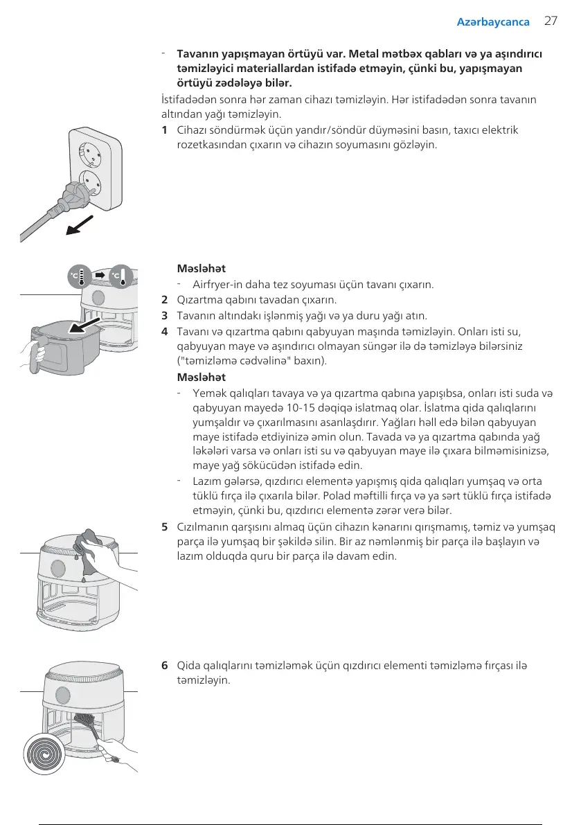 Lazım gələrsə, qızdırıcı elementə yapışmış qida qalıqları yumşaq və orta