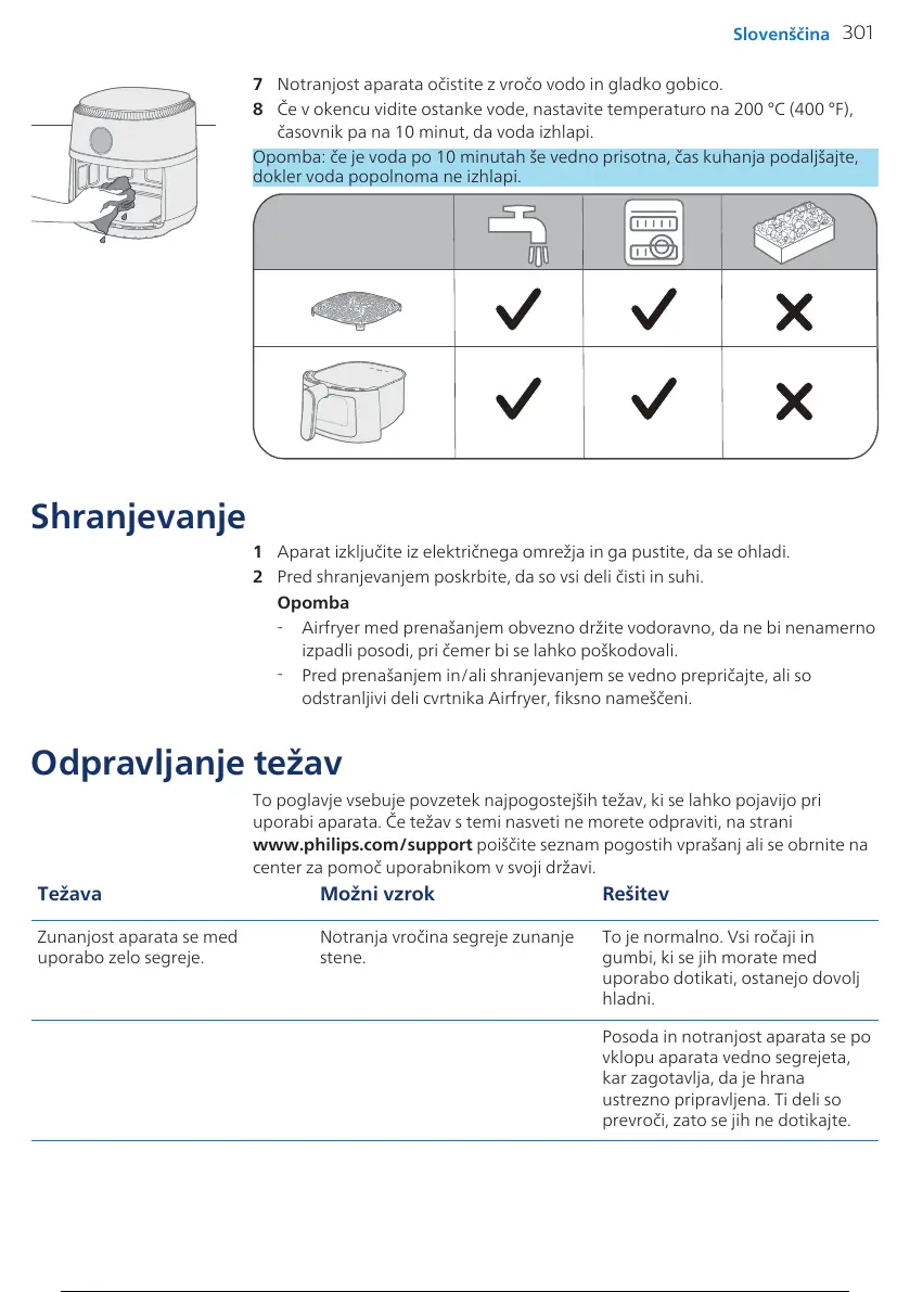 7 Notranjost aparata očistite z vročo vodo in gladko gobico.